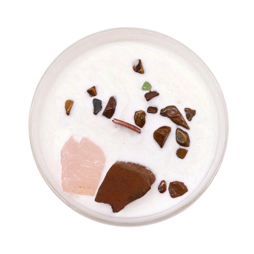Fall in love with this enchanting candle infused with Rose Quartz crystal and dried rose flowers. Each candle includes a hidden tarot card revealing a unique story.