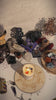 Unleash bold energy with this striking candle, crafted with Black Obsidian gemstones and delicate dried flowers.